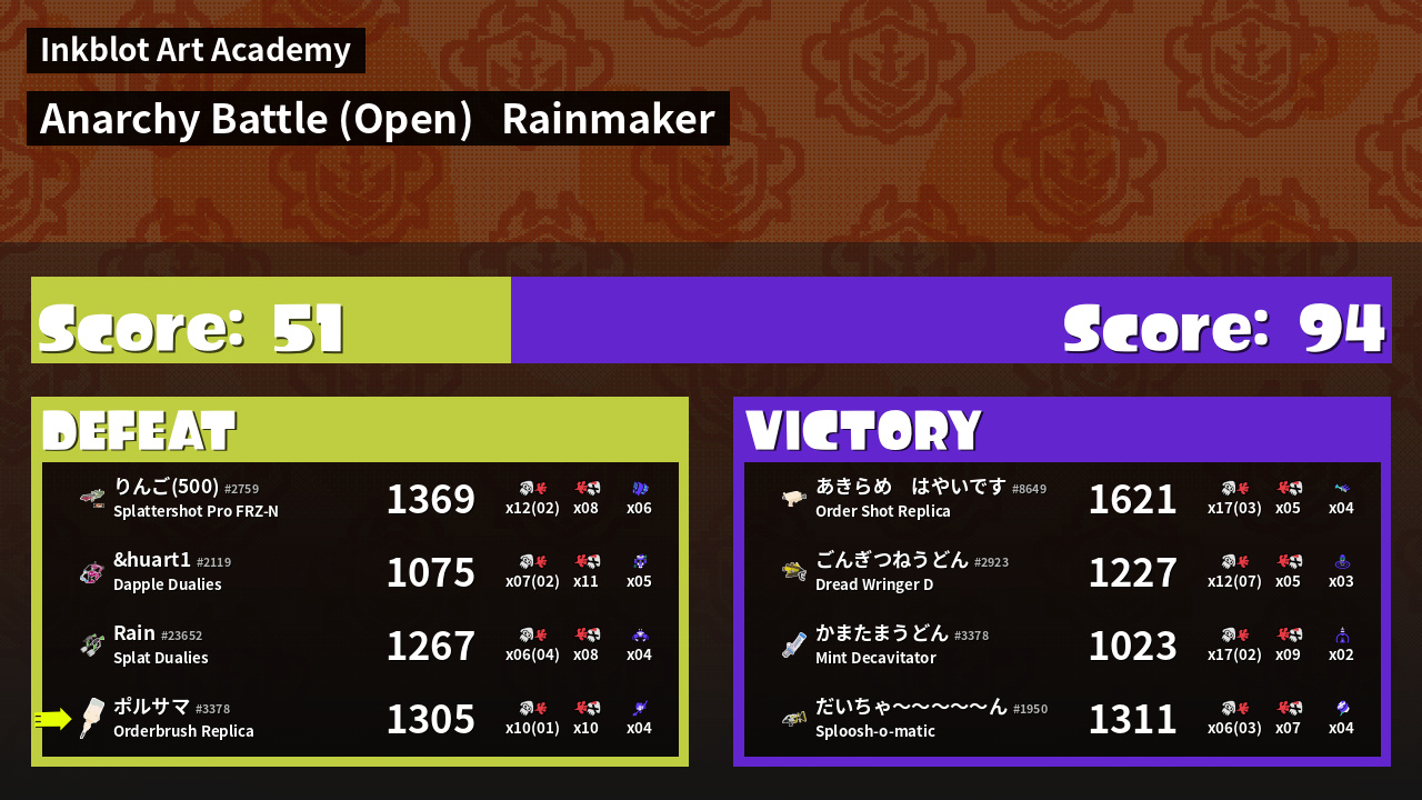 Name | Weapon | Inked | ![]() |