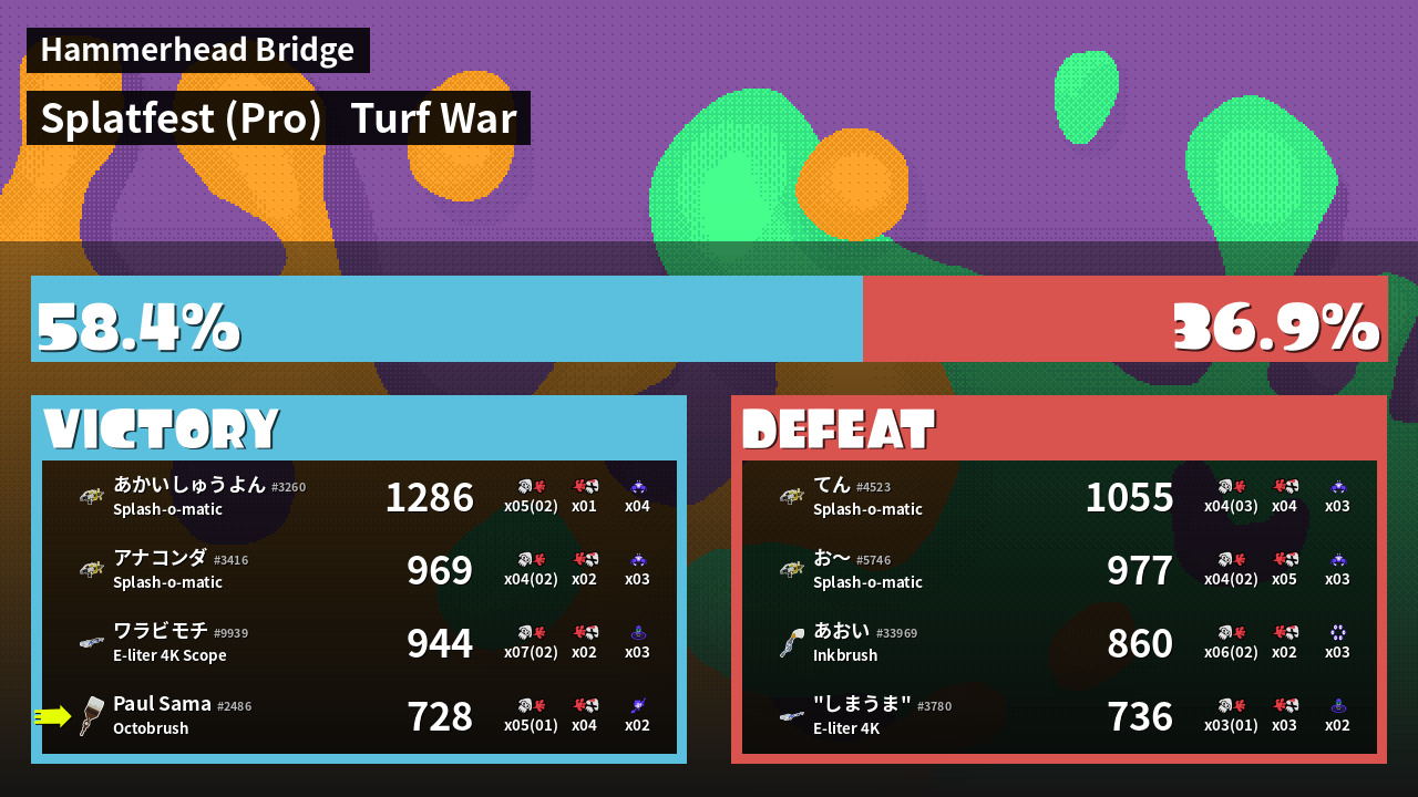 | Mode | Turf War - Splatfest (Pro) | ||