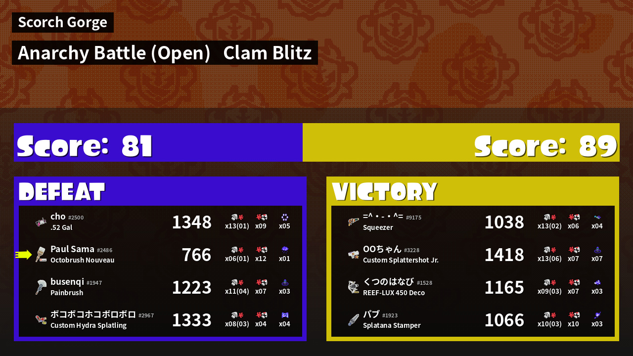 | Mode | Clam Blitz - Anarchy Battle (Open) | ||