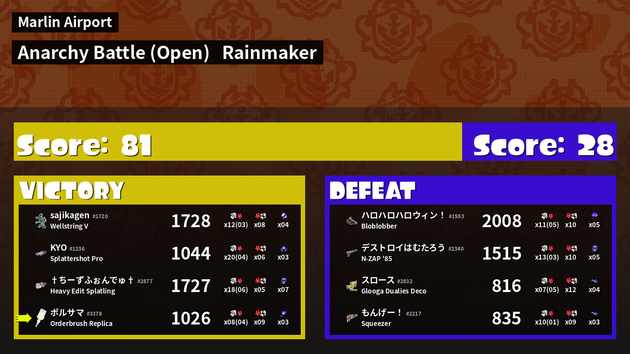 | Mode | Rainmaker - Anarchy Battle (Open) | ||
