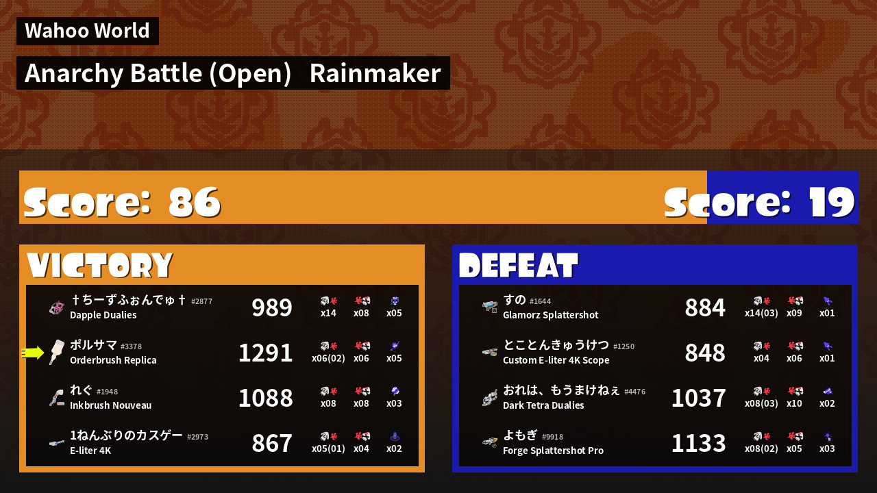 | Mode | Rainmaker - Anarchy Battle (Open) | ||