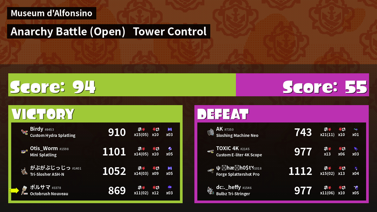 | Mode | Tower Control - Anarchy Battle (Open) | ||