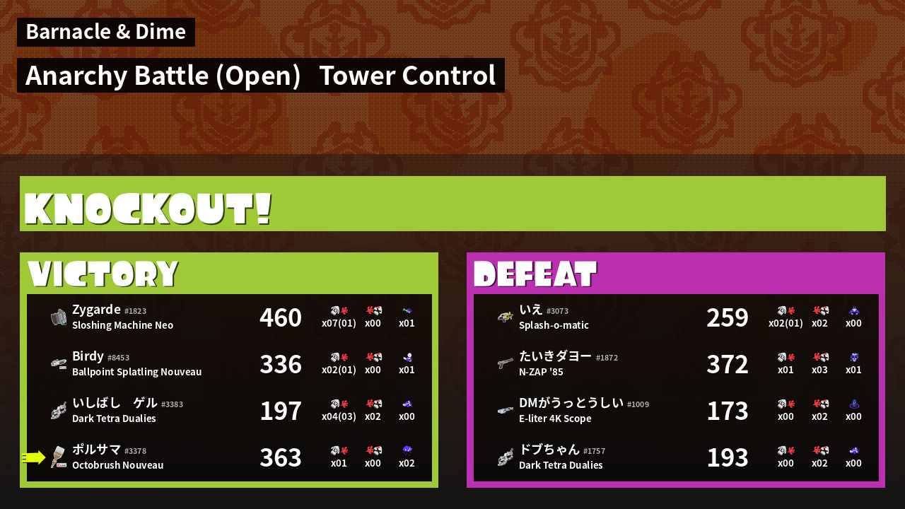 | Mode | Tower Control - Anarchy Battle (Open) | ||