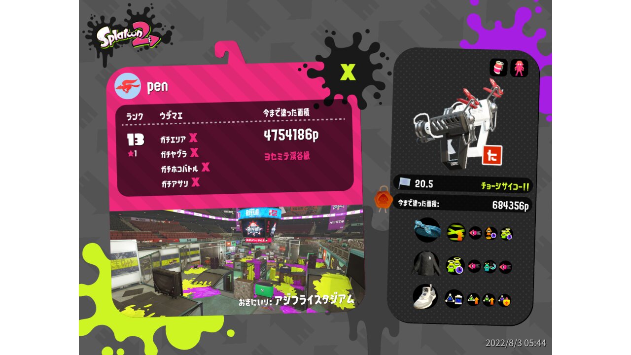 | Name | Weapon | Level | Rank | Inked | k+a/sp | k/d |