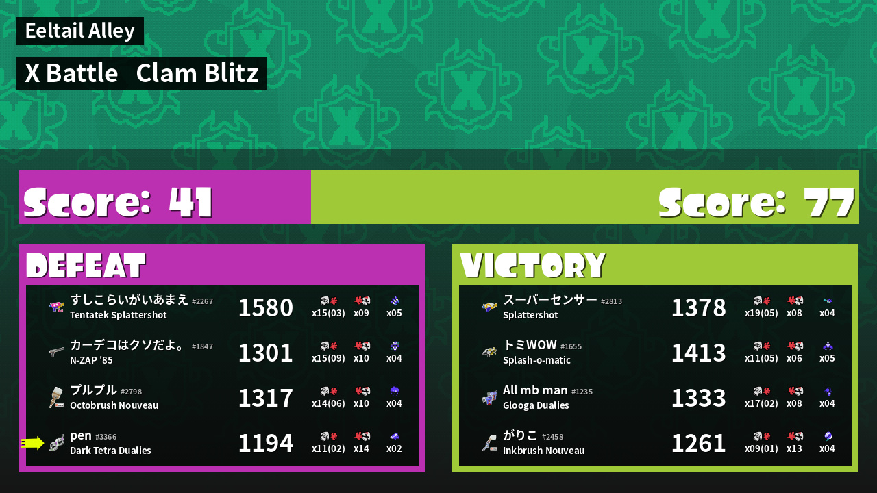 | Medals | #2 Clam Carrier #2 Super Jump Spot #2 Enemy Splatter | ||