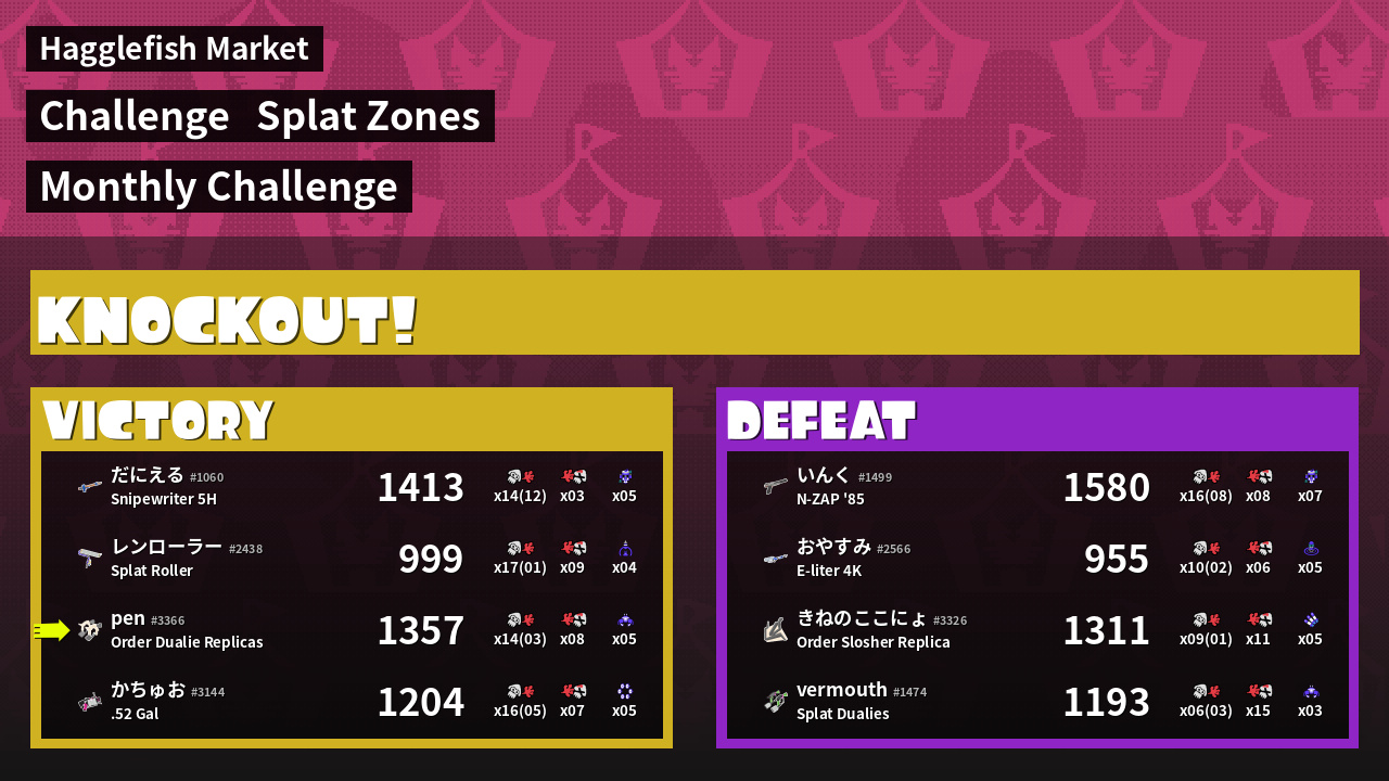 Kills / Deaths | 11 + 3 / 8 > Kill Ratio: 1.38 | ||