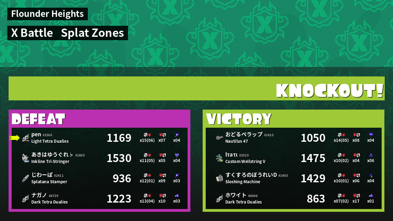 | Mode | Splat Zones - X Battle | ||
