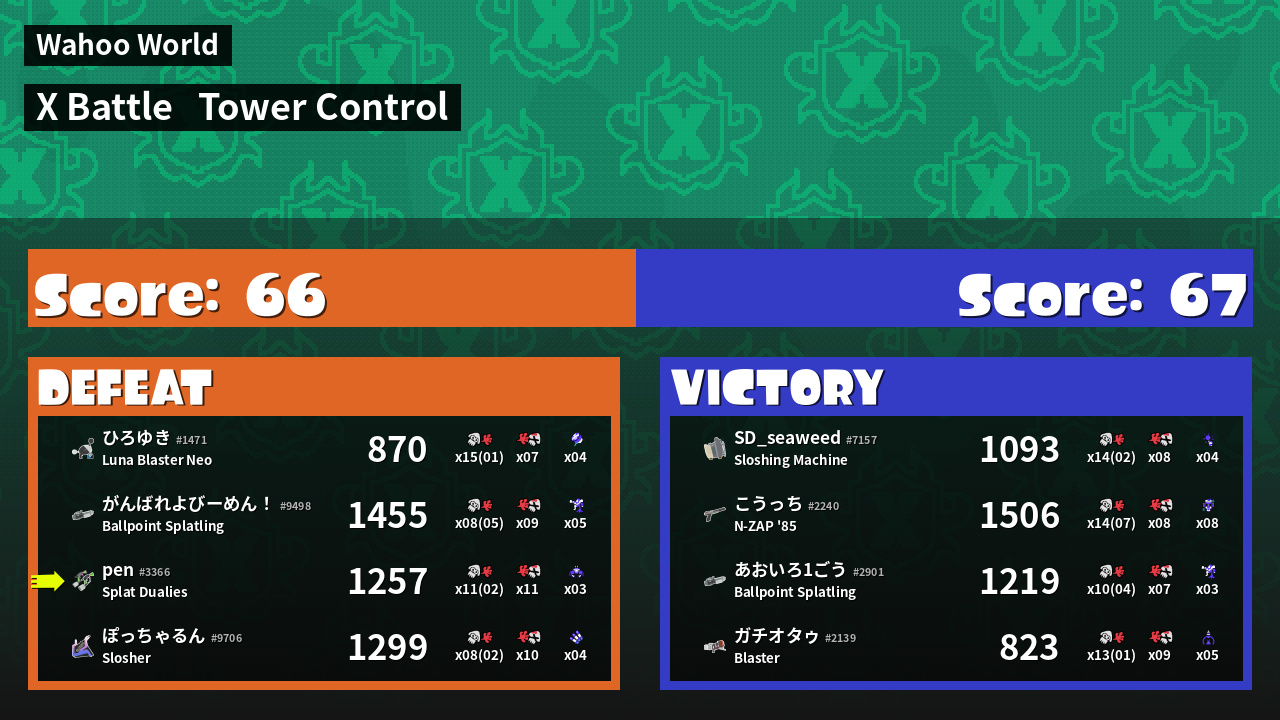 | Mode | Tower Control - X Battle | ||