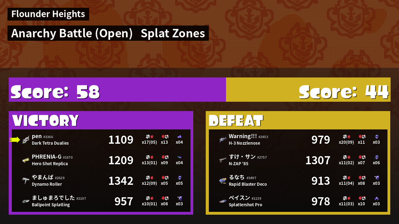 | Mode | Splat Zones - Anarchy Battle (Open) | ||