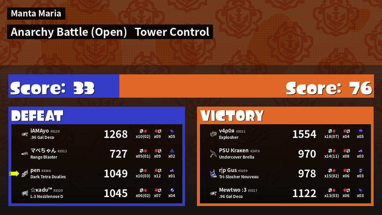 | Mode | Tower Control - Anarchy Battle (Open) | ||