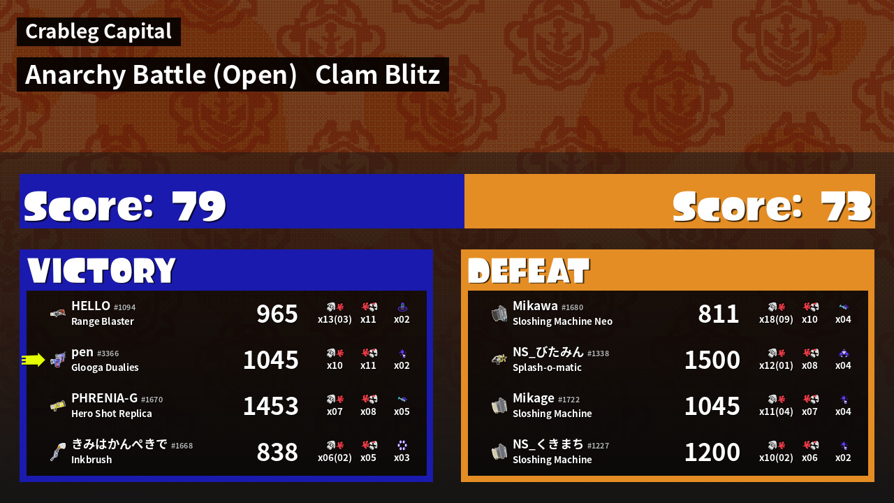| Mode | Clam Blitz - Anarchy Battle (Open) | ||