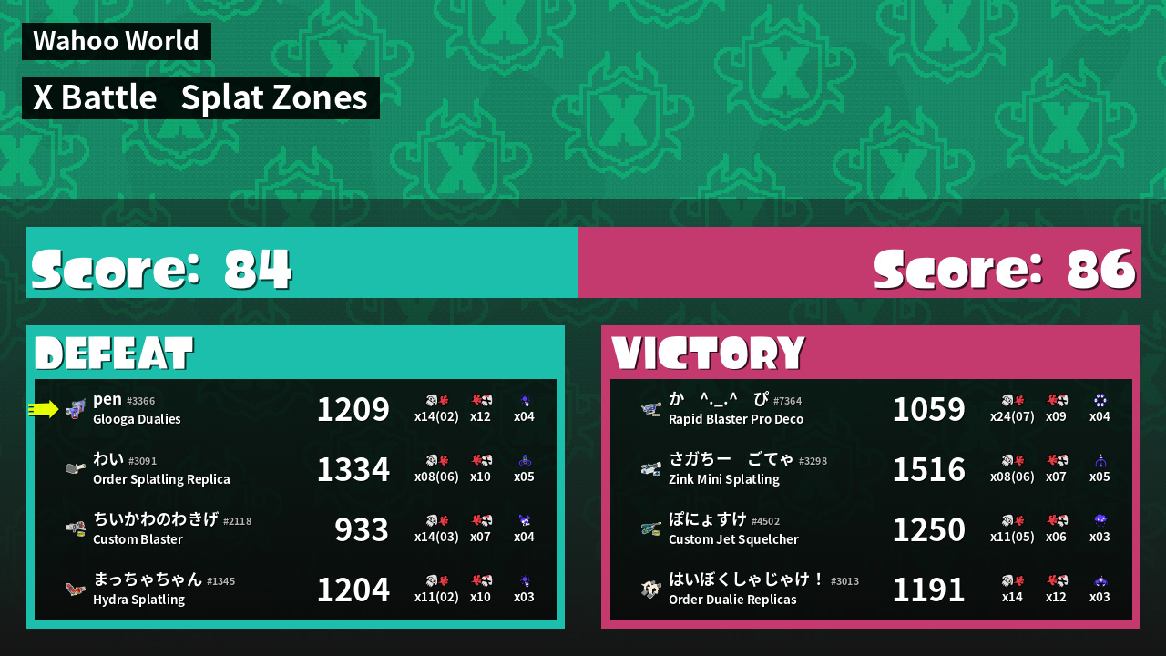 | Mode | Splat Zones - X Battle | ||