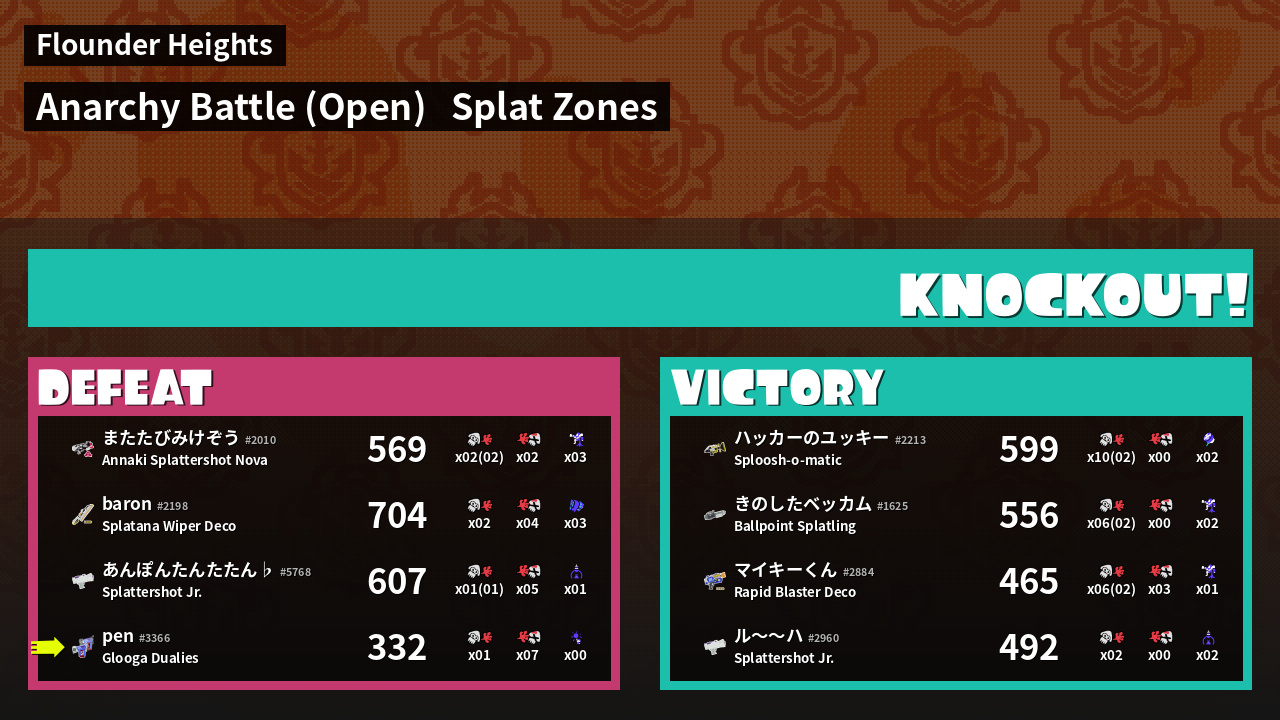 | Mode | Splat Zones - Anarchy Battle (Open) | ||