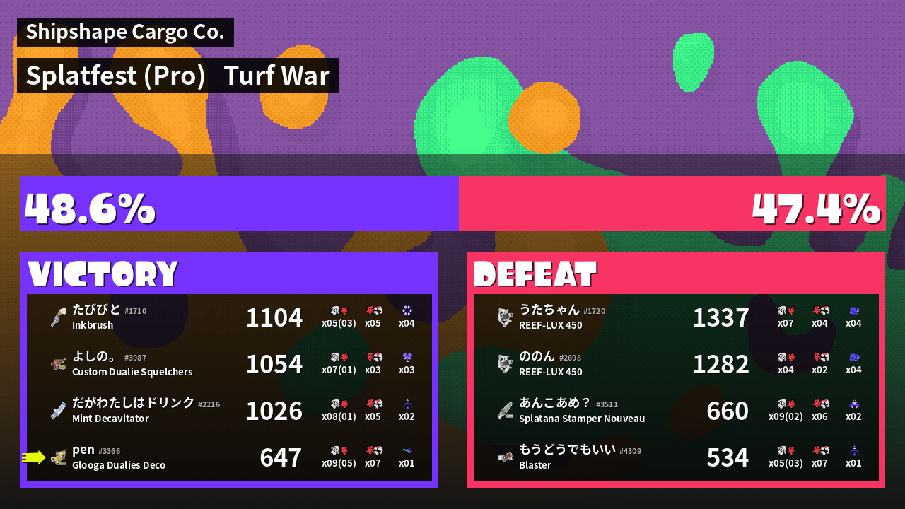 | Medals | #1 Overall Splatter #1 Splat Assister #1 Base Defender | ||