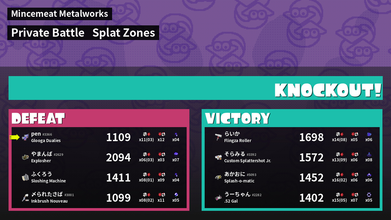 Name | Weapon | Inked | ![]() |