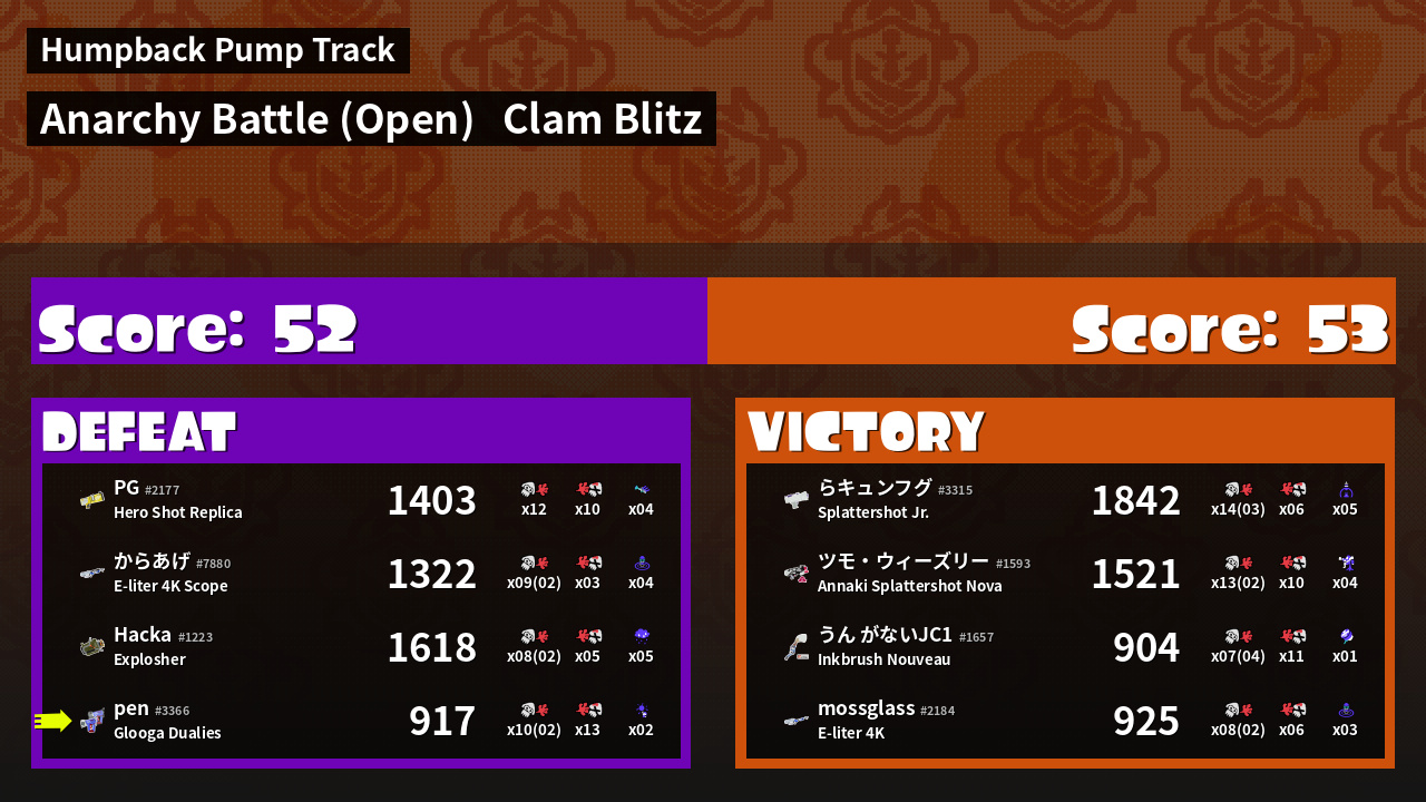 | Mode | Clam Blitz - Anarchy Battle (Open) | ||