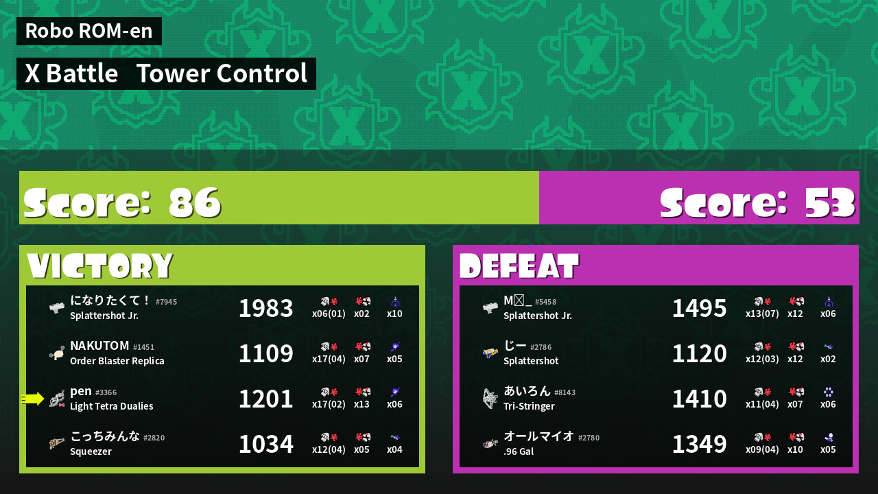 | Medals | #1 Overall Splatter #1 Enemy Splatter #1 Tower Stopper | ||