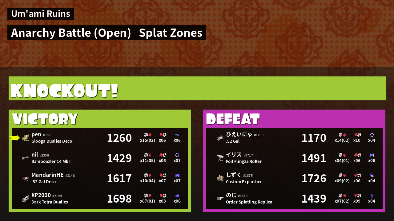 | Mode | Splat Zones - Anarchy Battle (Open) | ||