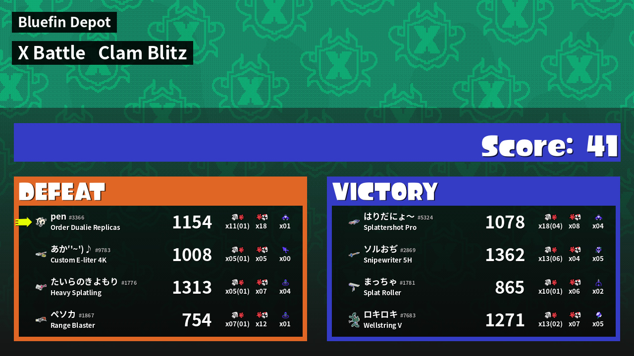 | Mode | Clam Blitz - X Battle | ||
