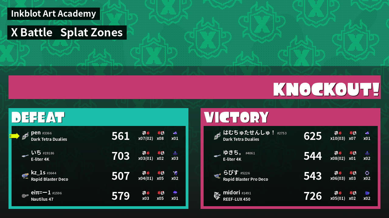| Mode | Splat Zones - X Battle | ||
