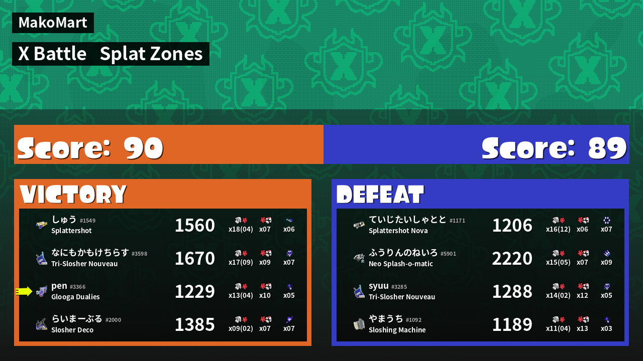 | Medals | #2 Splat Zone Inker #2 Enemy Splatter #2 Splat Assister | ||