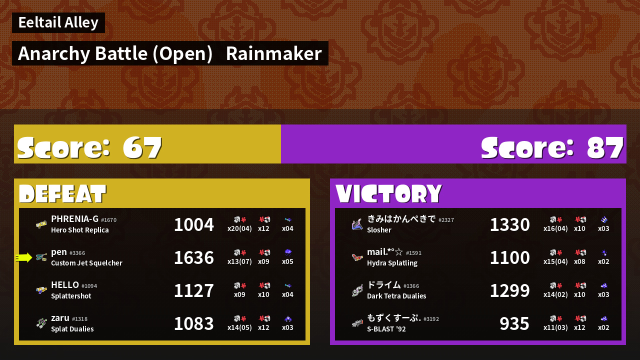 | Mode | Rainmaker - Anarchy Battle (Open) | ||