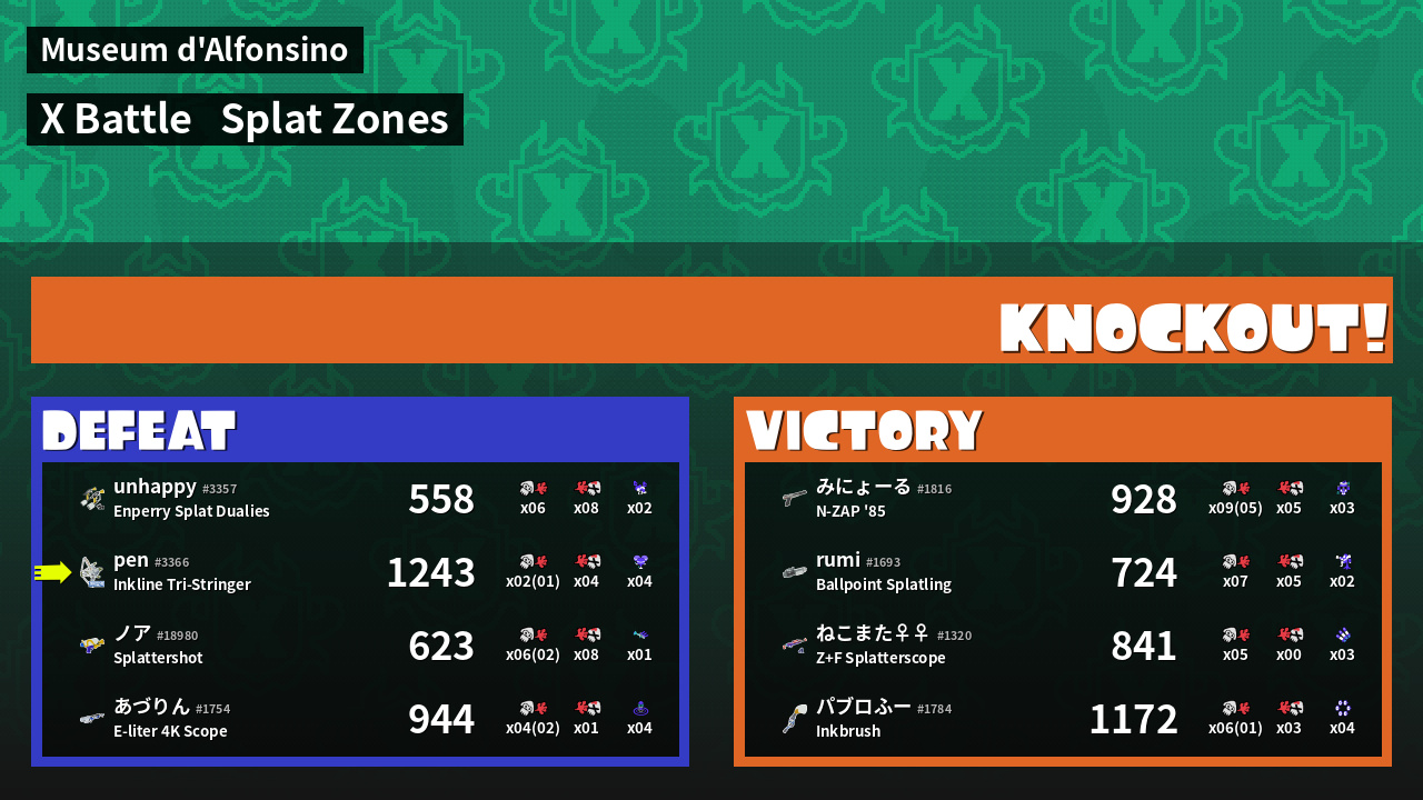 | Mode | Splat Zones - X Battle | ||