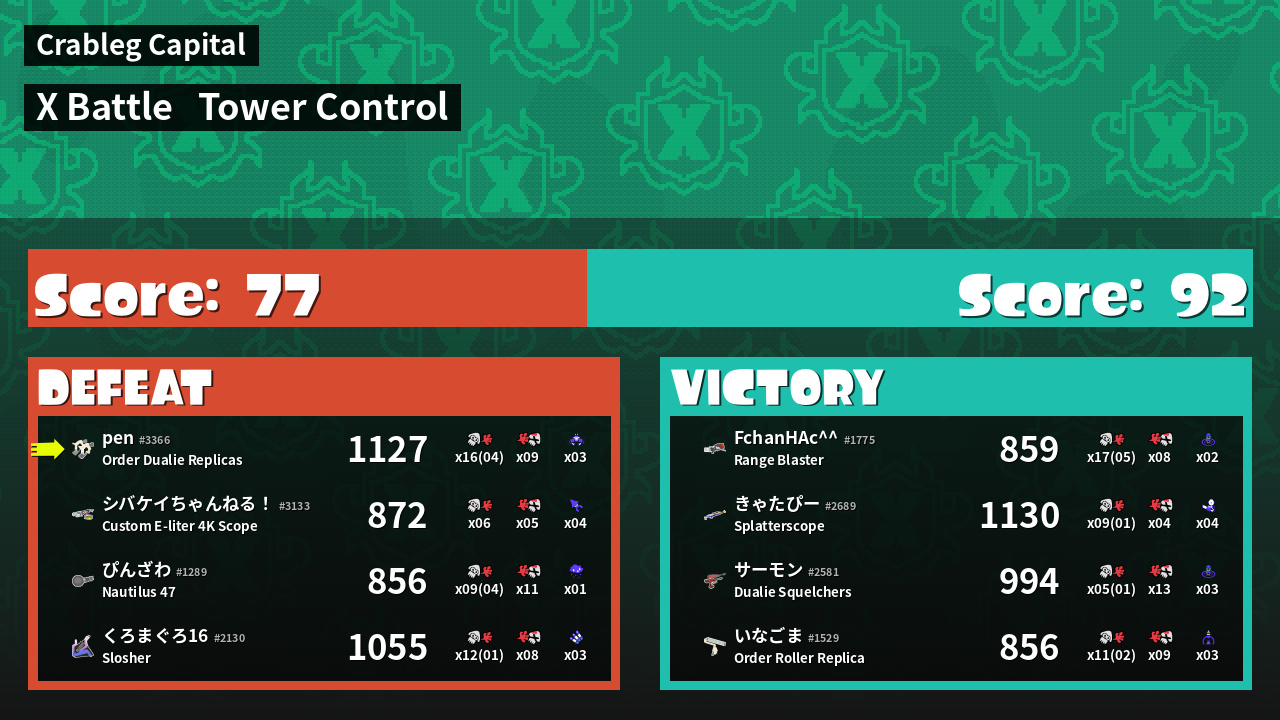 | Mode | Tower Control - X Battle | ||