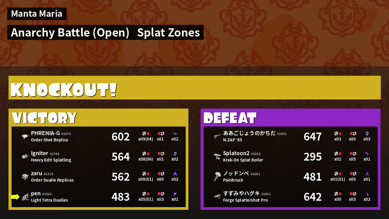 Name | Weapon | Inked | ![]() |