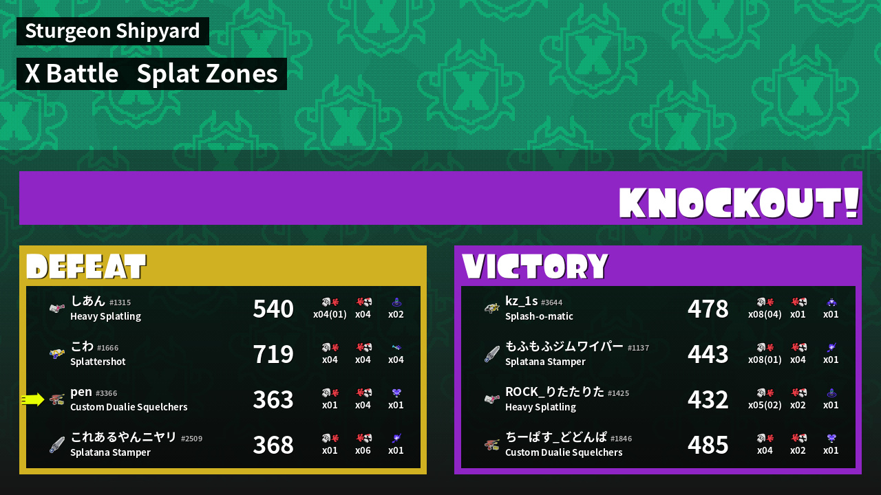 | Medals | #1 Splat Zone Hero #1 Ground Traveler #1 Damage Taker | ||