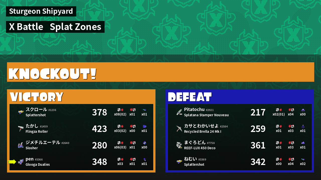 | Mode | Splat Zones - X Battle | ||