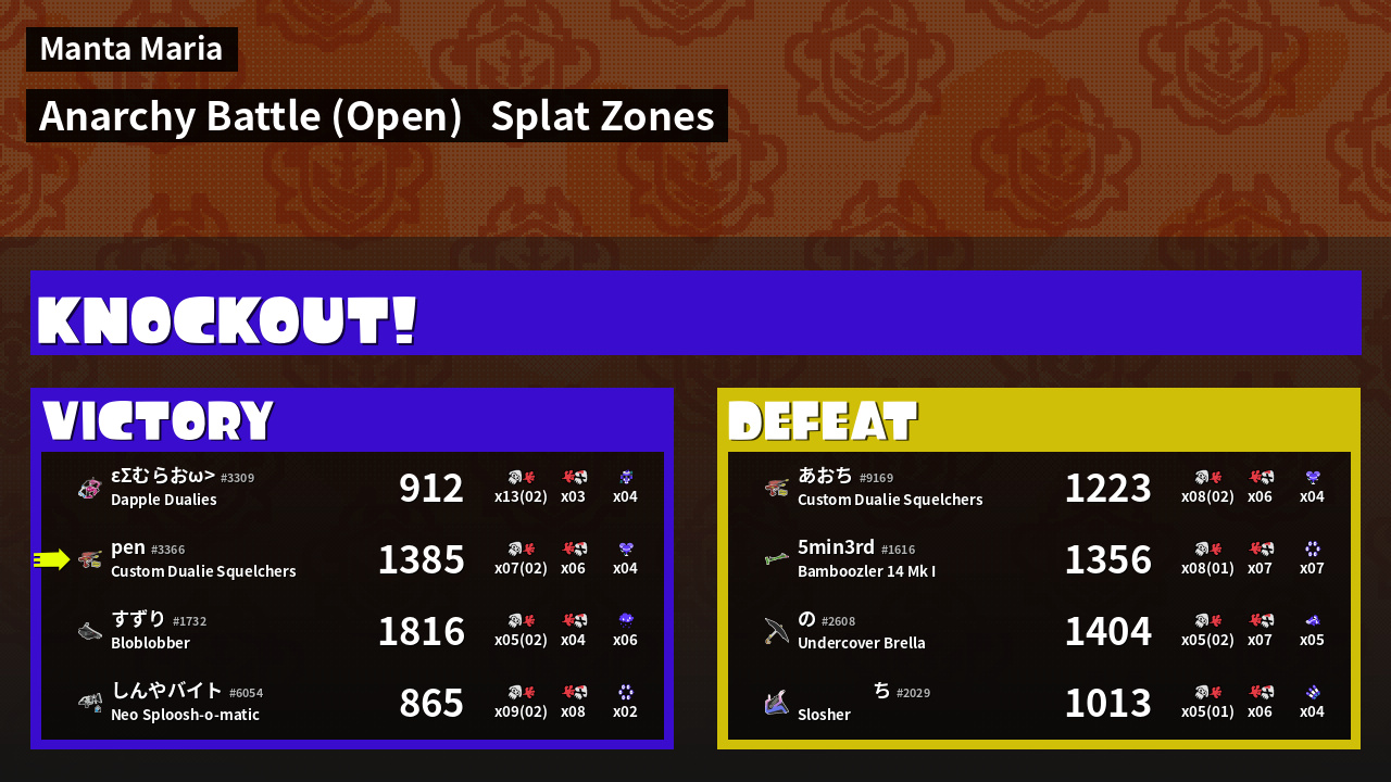 | Mode | Splat Zones - Anarchy Battle (Open) | ||