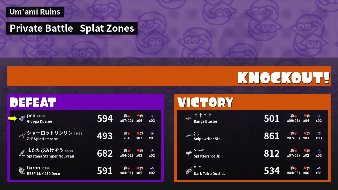 | Medals | #1 Overall Splatter #1 Splat Zone Guard #1 Enemy Splatter | ||