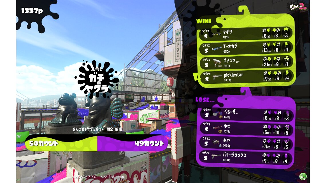 | Name | Weapon | Level | Rank | Inked | k+a/sp | k/d |