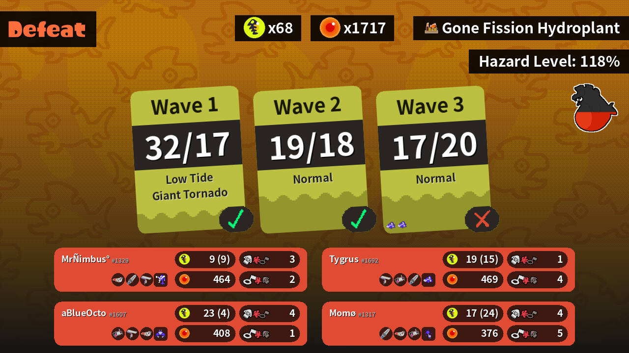 | Weapons | Goo Tuber Splatana Stamper Splat Roller | .52 Gal Splat Roller Goo Tuber | Splat Roller .52 Gal Splatana Stamper | Splatana Stamper Goo Tuber .52 Gal |