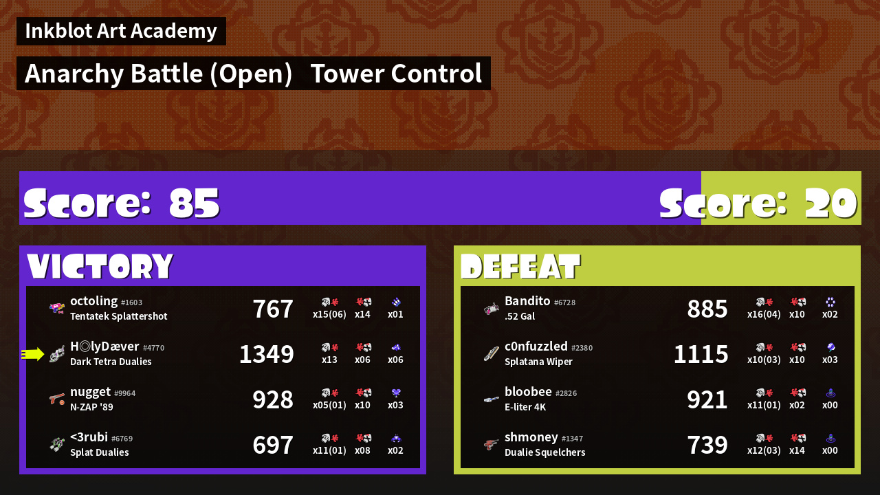 | Mode | Tower Control - Anarchy Battle (Open) | ||