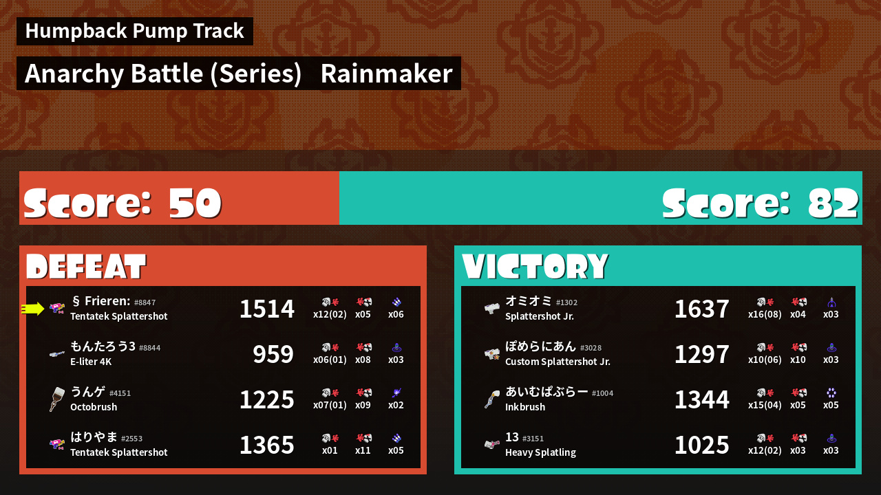 | Mode | Rainmaker - Anarchy Battle (Series) | ||