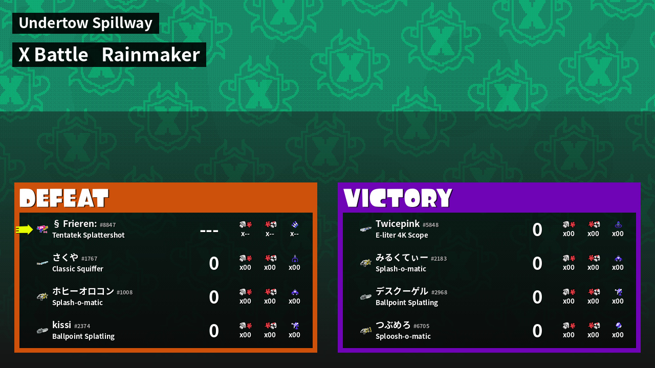 | Weapon | Tentatek Splattershot ( Splat Bomb / Triple Inkstrike) | ||