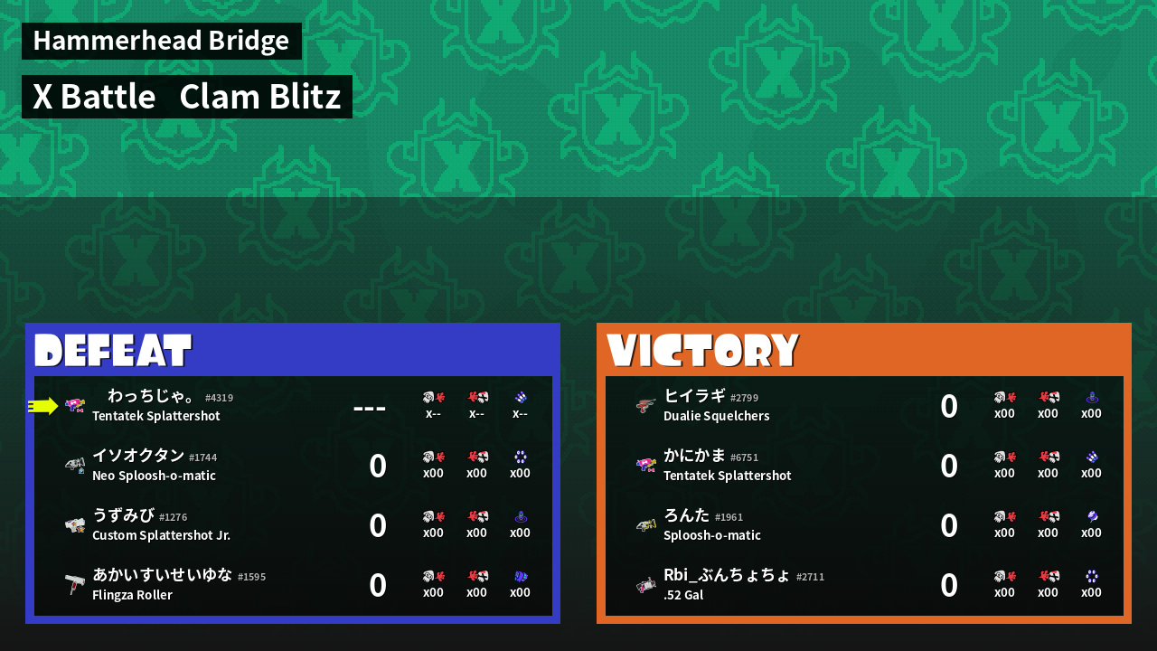 | Mode | Clam Blitz - X Battle | ||