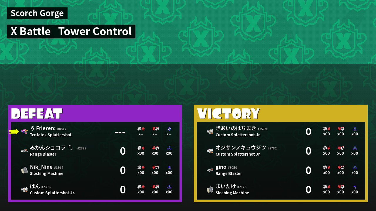 | Weapon | Tentatek Splattershot ( Splat Bomb / Triple Inkstrike) | ||
