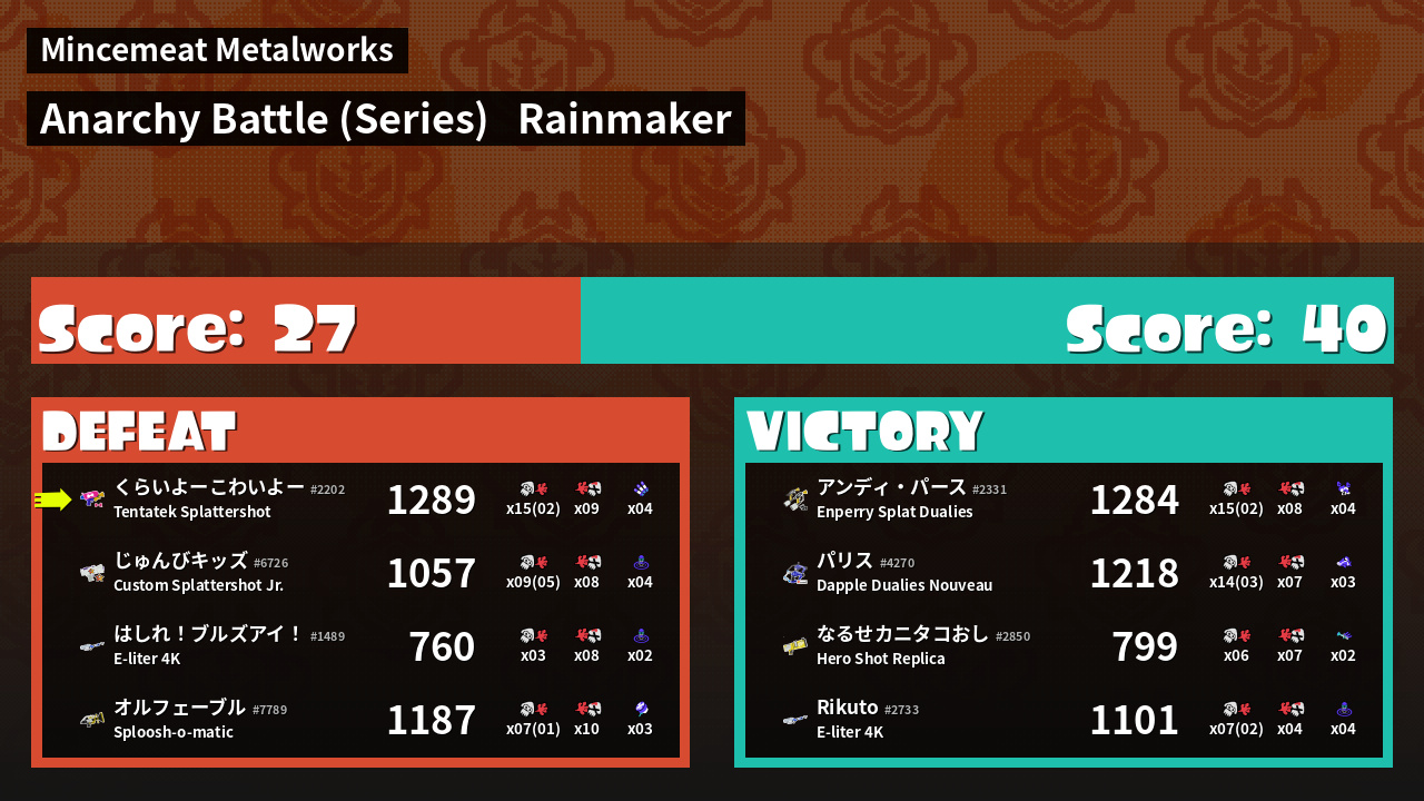 | Medals | #1 Overall Splatter #1 Turf Inker #1 Popular Target | ||