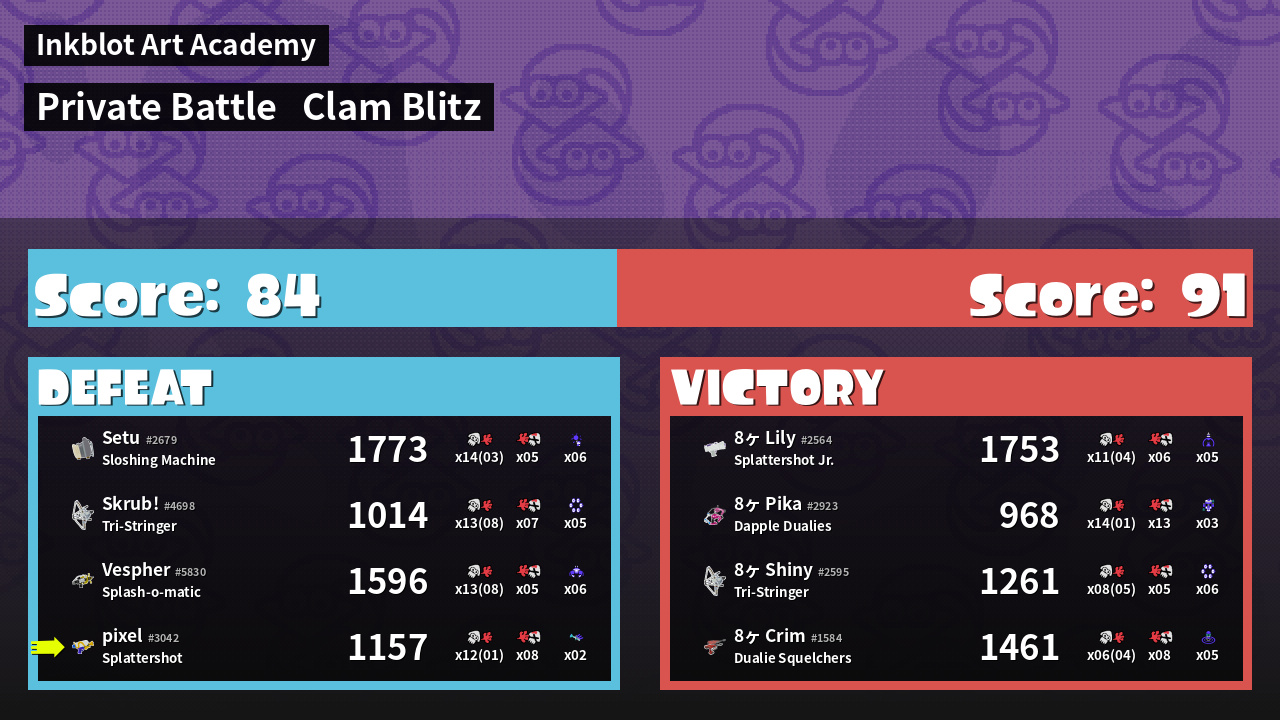 | Medals | #1 Enemy Splatter #1 Trizooka User #2 Popular Target | ||