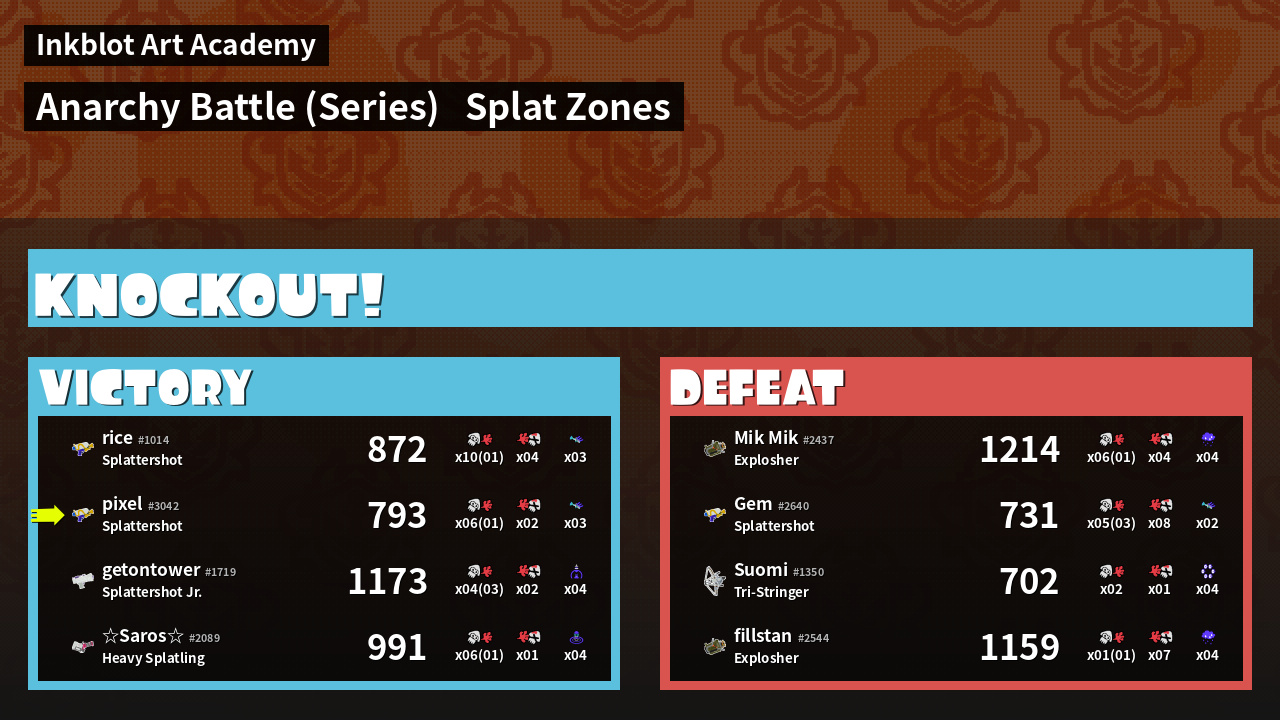 Name | Weapon | Inked | ![]() |