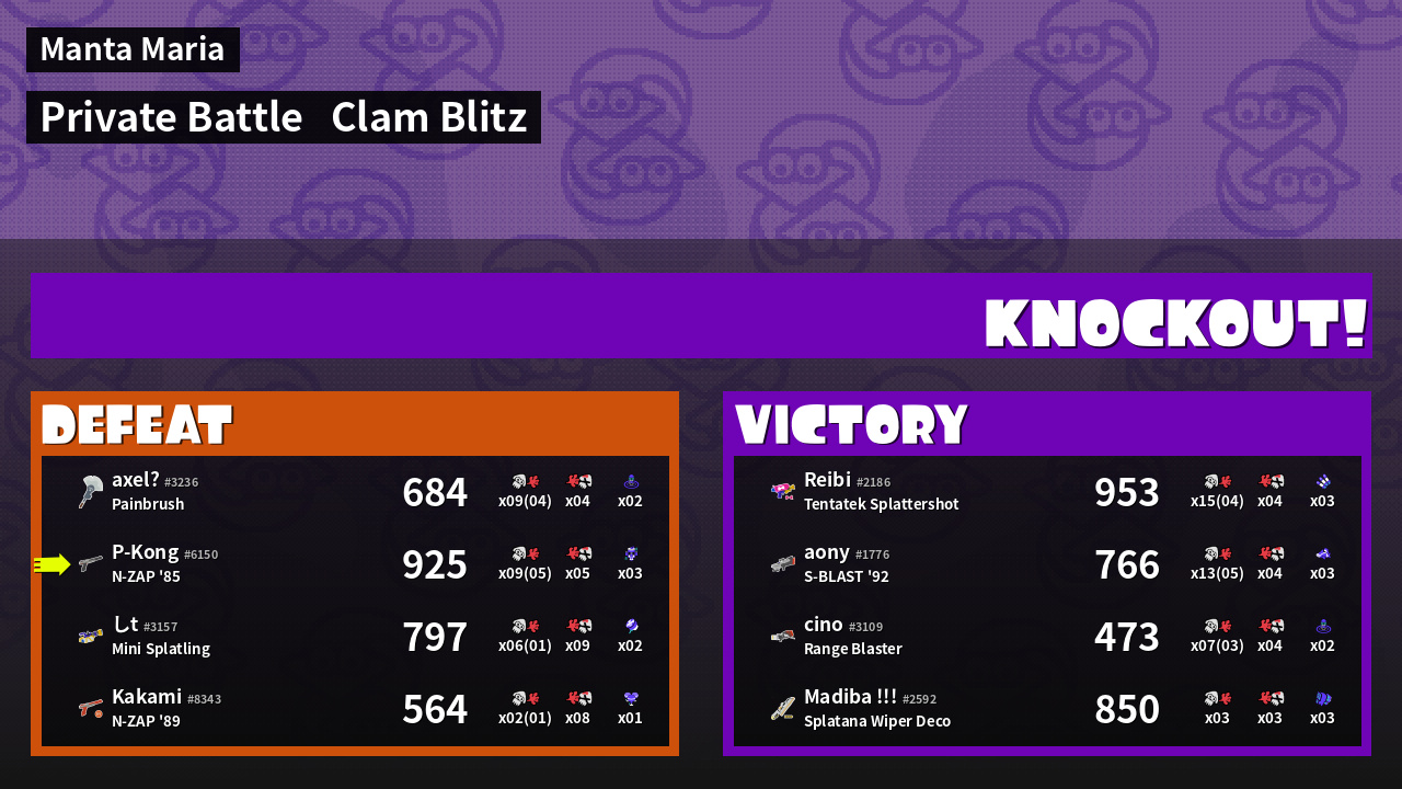 | Mode | Clam Blitz - Private Battle | ||