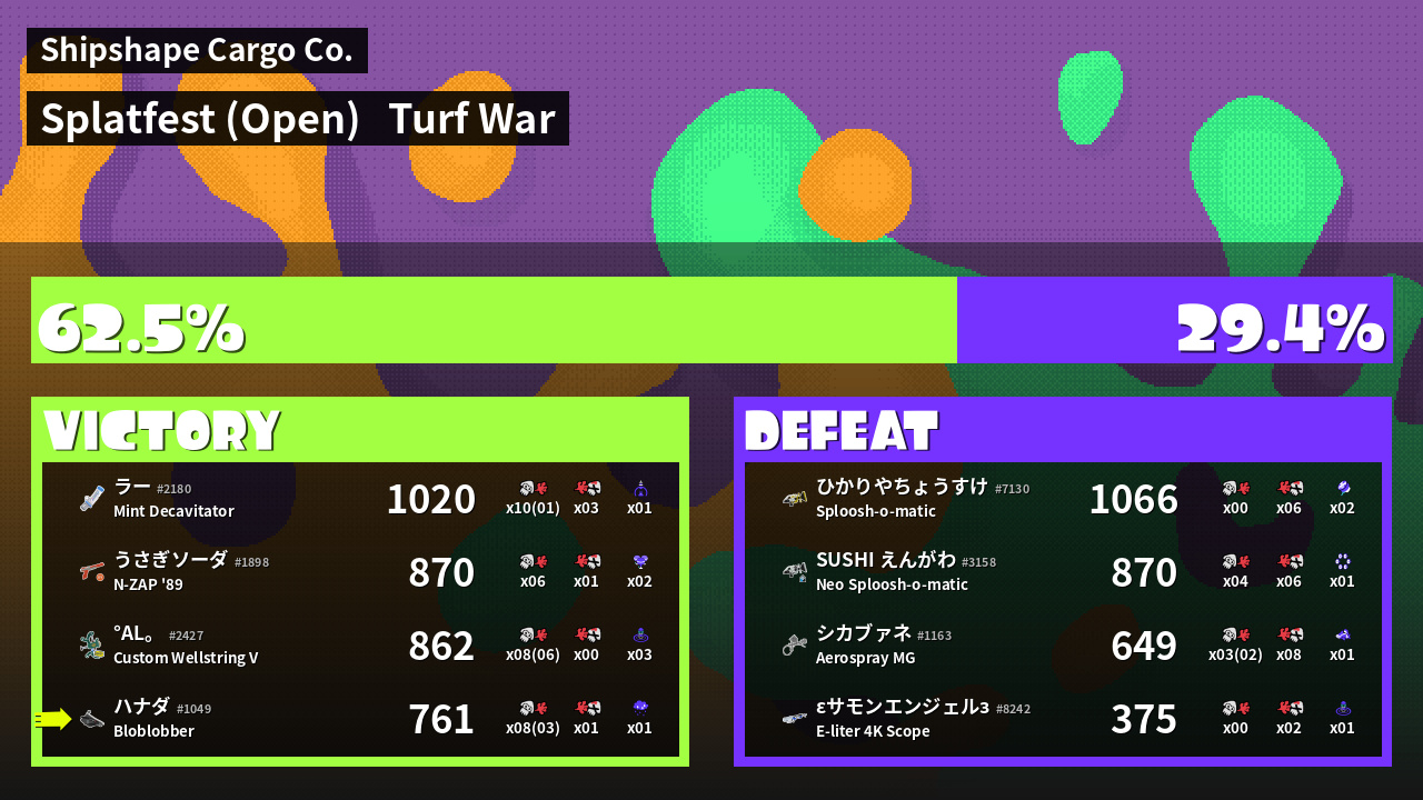 | Mode | Turf War - Splatfest (Open) | ||