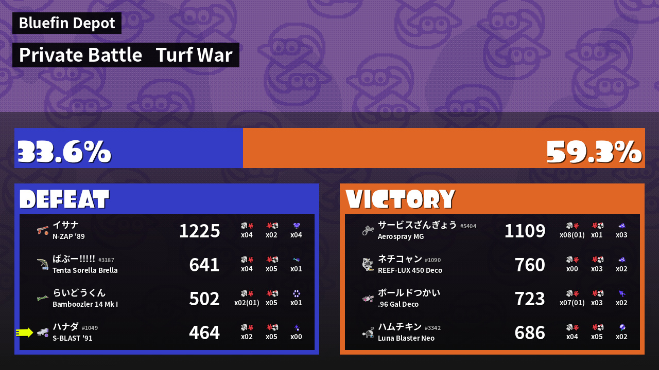 | Mode | Turf War - Private Battle | ||