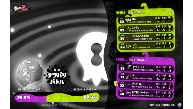 | Splatfest Power | 1,877.3 | |||||||||||||||||||||||||||||||||||||