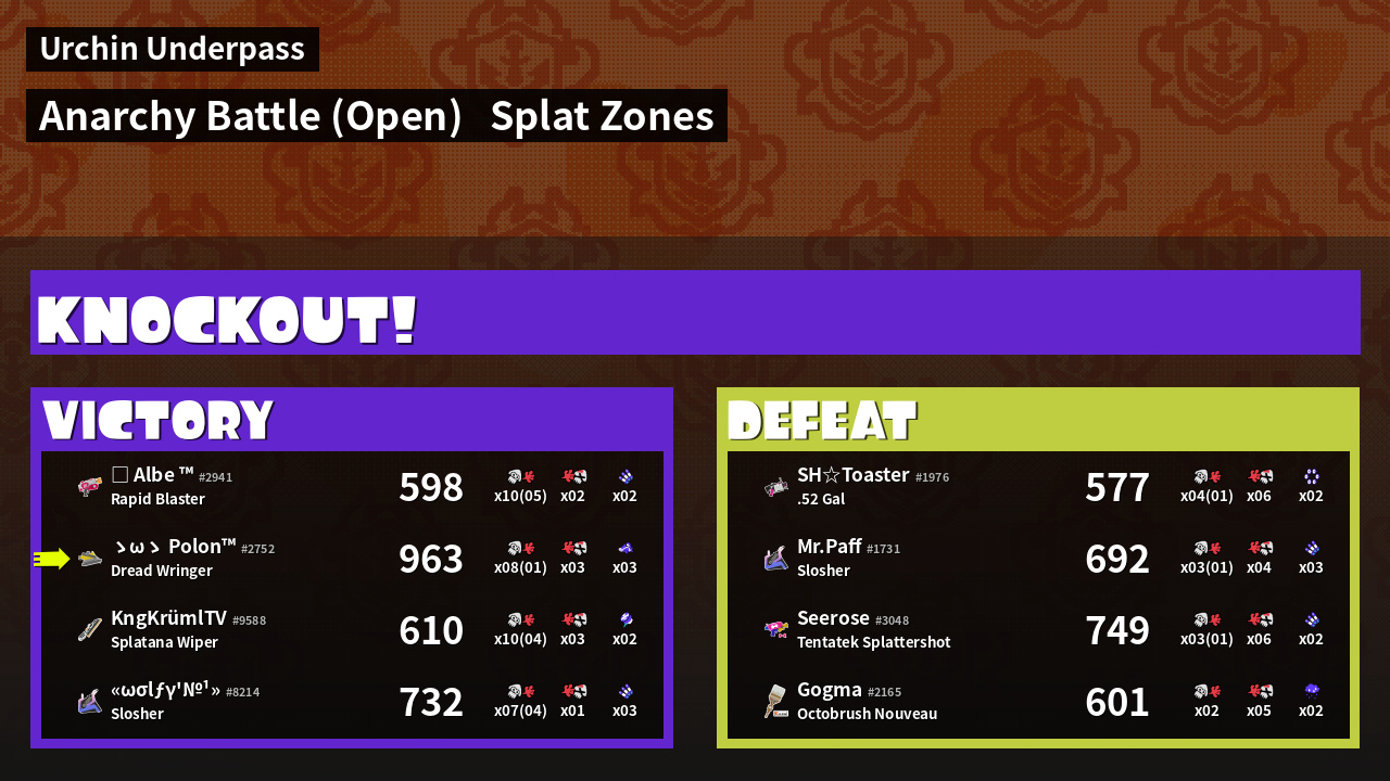 | Mode | Splat Zones - Anarchy Battle (Open) | ||