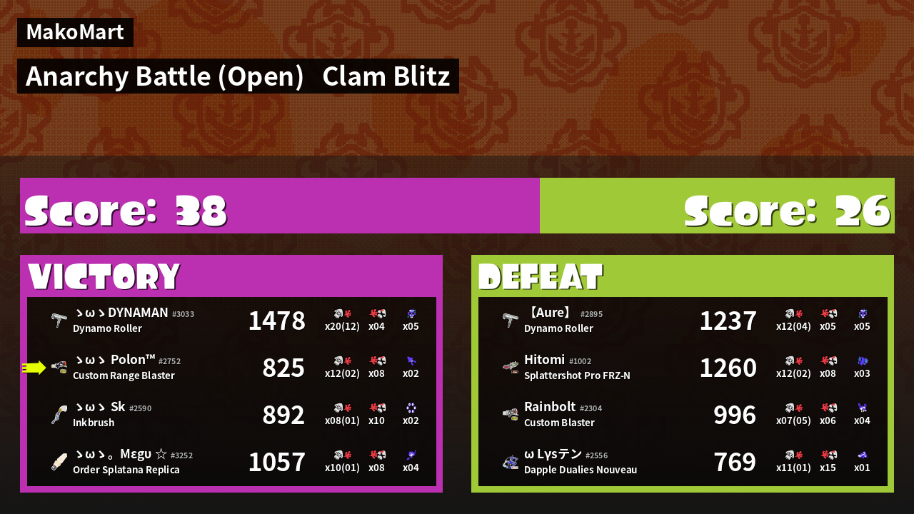 | Mode | Clam Blitz - Anarchy Battle (Open) | ||