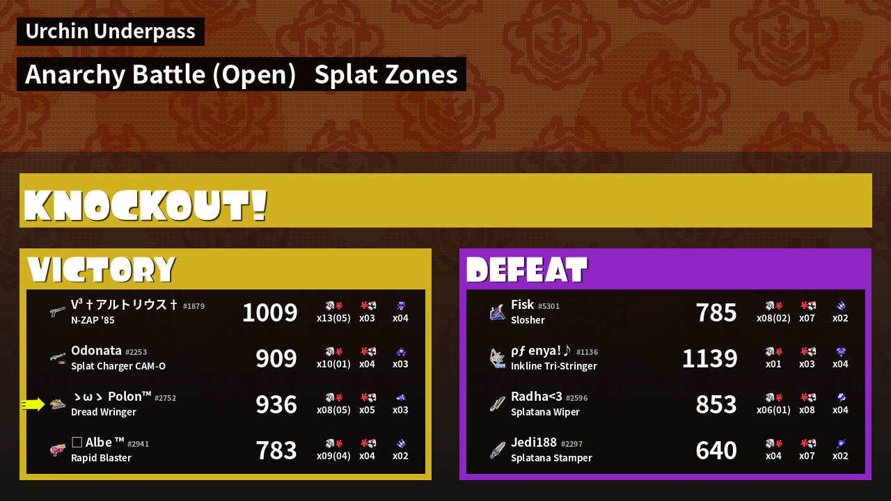 | Mode | Splat Zones - Anarchy Battle (Open) | ||